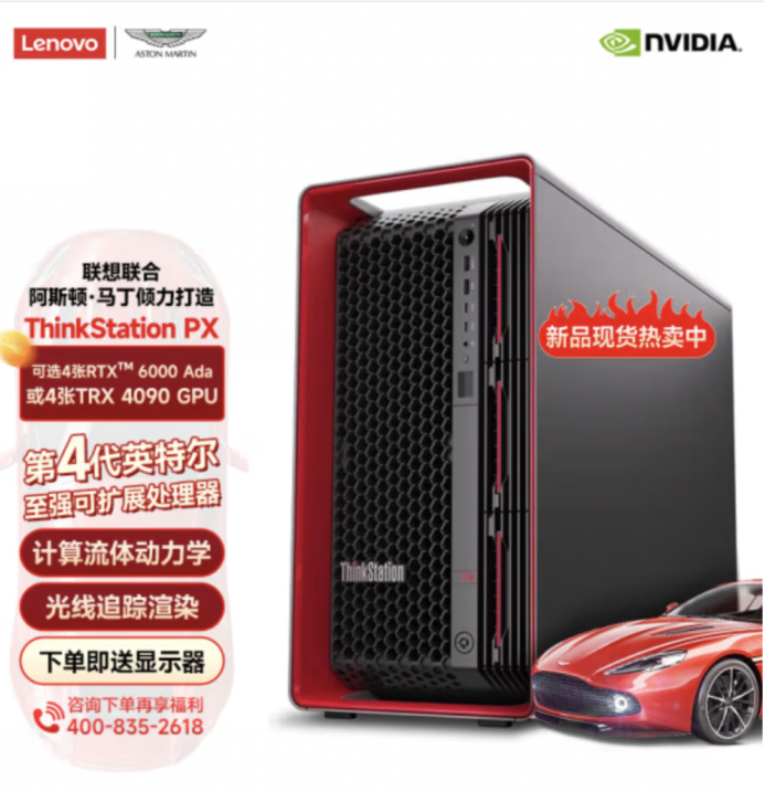 史詩(shī)級(jí)散熱設(shè)計(jì),顛覆性技術(shù)革新!今年3月,聯(lián)想發(fā)布有史以來(lái)最具技術(shù)突破性的臺(tái)式工作站——ThinkStation PX,全面滿(mǎn)足工程師、創(chuàng)意工作者和數(shù)學(xué)科學(xué)家對(duì)強(qiáng)算力、高性能、快速運(yùn)行的進(jìn)一步需求。其采用了由聯(lián)想與豪華跑車(chē)制造商阿斯頓馬丁共同打造的全新空氣動(dòng)力學(xué)散熱設(shè)計(jì)機(jī)箱,為各行各業(yè)高強(qiáng)度工作注入澎湃算力支持。聯(lián)想ThinkStation PX是業(yè)界獨(dú)家可以支持兩顆頂級(jí)350W至強(qiáng)處理器加四塊300W頂級(jí)專(zhuān)業(yè)顯卡的工作站產(chǎn)品,做到了當(dāng)前桌面工作站的性能極致,帶來(lái)史詩(shī)級(jí)澎湃的性能釋放,可以幫助用戶(hù)輕松應(yīng)對(duì)復(fù)雜工作流。最多可搭載4TB DDR5內(nèi)存,通過(guò)PCIe Gen 5高速通道提供超高帶寬,還可提供高效的1850W電源和可選冗余電源。