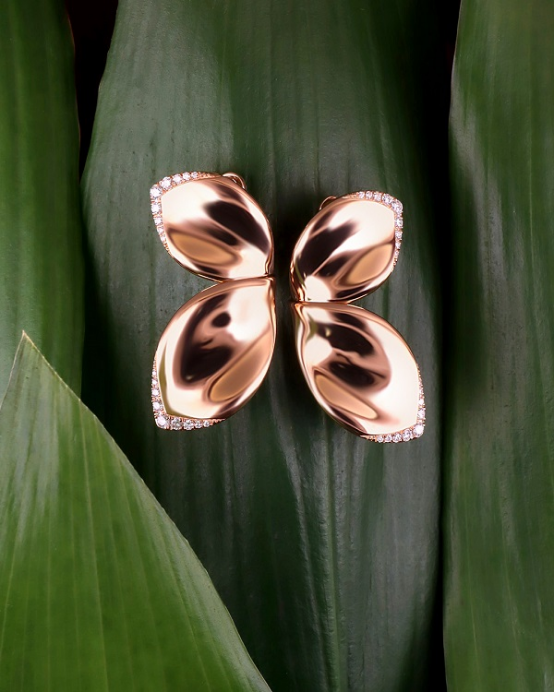 Eugenia Bruni:我個人一直對耳環(huán)十分著迷,也熱衷于研究耳環(huán),因為耳環(huán)可以點亮整體造型風(fēng)格。在我看來,如果戒指可以比作“國王”,那么耳環(huán)就是毫無疑問的“女王”?!癎iardini Segreti”系列中耳環(huán)的美感在于就是它的靈動,通過不同的佩戴方式展現(xiàn)不一樣的效果。當(dāng)佩戴兩枚葉片時,則呈現(xiàn)出蝴蝶的形象,當(dāng)佩戴四枚葉片時,就呈現(xiàn)出花朵的形態(tài)。匹配佩戴時出席的場合、穿著的禮服,襯托出女性獨一無二的別樣韻致。