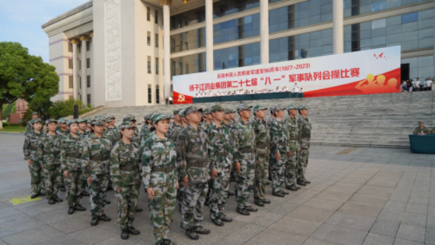 軍旗飄揚,軍號嘹亮。為慶祝中國人民解放軍建軍96周年,8月1日下午,揚子江藥業(yè)集團第二十七屆“八一”軍事隊列會操比賽在泰州總部舉行。泰州市委常委、軍分區(qū)司令員廖鵬,市退役軍人事務(wù)局局長張兆洋,高港區(qū)人武部部長朱平平出席活動,揚子江藥業(yè)集團黨委書記、董事長、總經(jīng)理徐浩宇現(xiàn)場觀摩會操比賽并講話。
