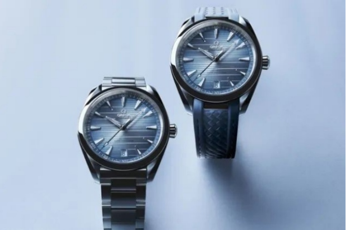 150米這個(gè)深度在海洋的層次中屬于照光層。這次歐米茄海馬紀(jì)念款在150米的防水區(qū)間,有三款作品。分別是 Aqua Terra 38毫米,41毫米和世界時(shí)腕表。表盤淺藍(lán)色的漸變層次讓人聯(lián)想到夏日陽(yáng)光下清澈透明的海水。