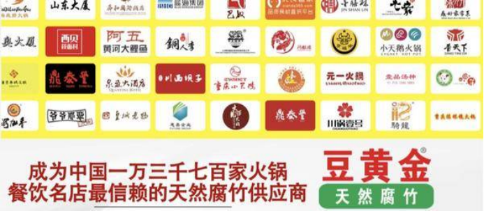 如今的豆黃金已和中國餐飲前100中的87家達成了戰(zhàn)略合作,銷售區(qū)域遍布全國,目前服務的終端餐飲網點超過3萬家,腐竹行業(yè)第一品牌名副其實。