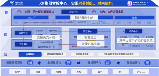 比如,格創(chuàng)東智為某頭部半導體工廠推出的智慧工廠一體化智控中心解決方案(1+4+1),以生產(chǎn)執(zhí)行和公司運營為基準,通過建立1個數(shù)據(jù)平臺、4個中心(戰(zhàn)情中心、告警中心、派工中心、分析中心)、1個知識庫,打造高效率、高可靠的智能集控中心,利用OctopusGPT實現(xiàn)了戰(zhàn)情中心報表自動生成、告警內(nèi)容分析、智能派工管理閉環(huán)、基于行業(yè)大模型的知識庫等智能化功能,使工廠營運管理過程更加智能高效,為企業(yè)帶來持續(xù)的價值和競爭優(yōu)勢。