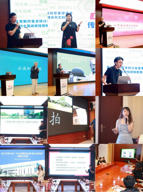 現(xiàn)場,湖北師范大學(xué)蔣達老師、山東工藝美術(shù)學(xué)院創(chuàng)新創(chuàng)業(yè)學(xué)院鄭建鵬老師、河南工業(yè)大學(xué)高雅真老師、蘇州大學(xué)劉英杰老師分別從高校美育改革與教學(xué)實踐創(chuàng)新、廣告設(shè)計核心技能培養(yǎng)、導(dǎo)師工作室教學(xué)培養(yǎng)、短視頻制作指導(dǎo)攻略進行主題分享。來自珠海科技學(xué)院黃鉦皓同學(xué),圍繞“追尋自我”主題分享自己短視頻創(chuàng)作的歷程。