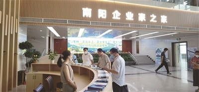 近日,調(diào)研組走進(jìn)南陽市企業(yè)服務(wù)中心。這座毗鄰南陽行政審批服務(wù)中心的建筑物恢弘大氣、設(shè)施完備、環(huán)境溫馨。南陽市企業(yè)服務(wù)中心建筑面積1.2萬平方米,是中部地區(qū)最大的企業(yè)服務(wù)實(shí)體大廳。該中心以“全賦能、心服務(wù)”為核心理念,設(shè)訴求響應(yīng)、中介服務(wù)、企業(yè)家素質(zhì)提升和精品展示四大功能區(qū),通過“一網(wǎng)六部一講堂”為主架構(gòu)的線上線下聯(lián)動機(jī)制,為企業(yè)提供全生命周期呵護(hù)、全鏈條體系支持、全需求要素保障、全方位素質(zhì)提升、全市場主體覆蓋、全流程精準(zhǔn)服務(wù)的六全一站式服務(wù)。