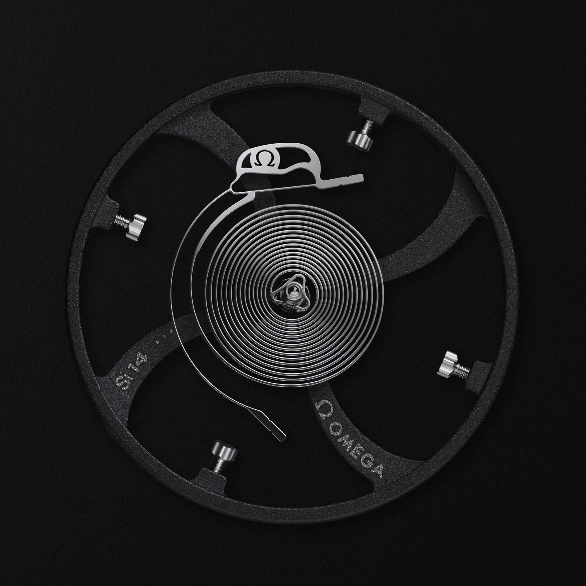 歐米茄最新推出的超霸系列 SUPER RACING 腕表采用了獨家研發(fā)的 Spirate 系統(tǒng),配備全新游絲(專利申請中),同時還可以對腕表走時進行超精細調節(jié),以最大限度提升腕表的走時精準度。這里必須簡述一下,面對著腕表走時細微的誤差,一般比較常用的調節(jié)校正系統(tǒng)有兩種:傳統(tǒng)的快慢針。通過調節(jié)機芯游絲的長度,改變游絲重心位置,來調節(jié)校正走時的快慢。新近流行的無卡度砝碼微調。通過調節(jié)機芯擺輪上的砝碼,來調節(jié)走時快慢。前者從寶璣時代沿用到今天,后者則可以與日漸流行的高科技新材料——硅游絲擺輪系統(tǒng)結合應用。歐米茄新研發(fā)的 Spirate 系統(tǒng),便是基于后者的結構,又在擺輪夾板上增加出了一個硅游絲調節(jié)裝置,讓其調節(jié)起來更為便捷而精準。