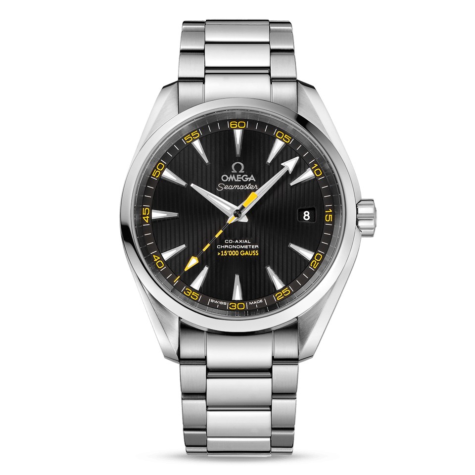 關于這款新表的外觀與功能:典型的第四代超霸風格,屬于表迷們熟悉而青睞的「月亮表」。值得注意的是其黃色測速計標尺,以及9點位黃黑相間的小秒針配色,這是為了呼應2013年推出的歐米茄第一款15000高斯防磁腕表海馬 Aqua Terra 「大黃蜂」。另一個相應的小細節(jié),6點位的日歷窗里顯示的特殊字體「10」,代表著2013到2023的10年,以提醒人們歐米茄在防磁技術上的再一次重大突破。機械計時機芯的愛好者還會注意到它采用的導柱輪的結構,手感更加清晰。