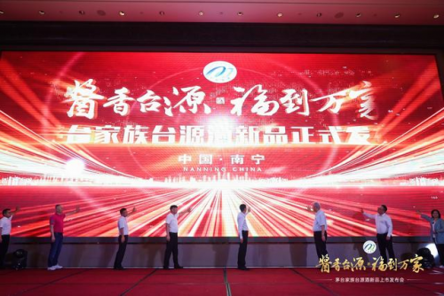 發(fā)布儀式上,出席活動的領(lǐng)導(dǎo)嘉賓共同按下啟動按鈕,一起見證臺源酒新品上市的榮耀時刻。伴隨著臺源酒正式上市發(fā)布,臺源酒從時代的記憶中向著美好走來,開啟了茅臺百元醬香基礎(chǔ)市場的大門。