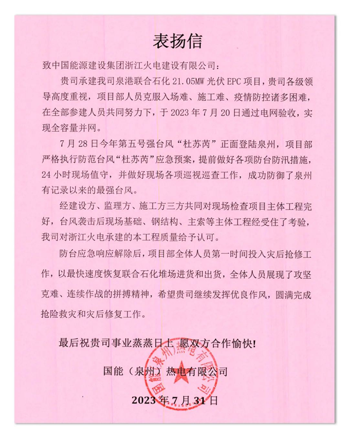 本次遭遇超強臺風(fēng)“杜蘇芮”,是泉港聯(lián)合石化光伏EPC項目從建設(shè)到并網(wǎng)以來經(jīng)歷的最嚴苛的挑戰(zhàn);也是索結(jié)構(gòu)柔性光伏支架系統(tǒng)在實際建設(shè)項目中遇到的最強自然風(fēng)暴。從某個角度講,索結(jié)構(gòu)柔性光伏支架系統(tǒng)以實際建設(shè)標準,在自然環(huán)境下經(jīng)受了一次非模擬狀態(tài)的“風(fēng)洞試驗”。