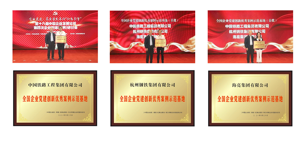 為了更加深入的推廣優(yōu)秀案例企業(yè)的黨建經(jīng)驗(yàn),發(fā)揮榜樣的示范作用,促進(jìn)優(yōu)秀案例企業(yè)之間相互學(xué)習(xí)、考察、交流,共同推動(dòng)企業(yè)黨建創(chuàng)新發(fā)展,全國企業(yè)黨建創(chuàng)新優(yōu)秀案例征集活動(dòng)組委會(huì)在本屆200家優(yōu)秀案例企業(yè)中,開展了“全國企業(yè)黨建創(chuàng)新優(yōu)秀案例示范基地”征集和申報(bào)工作。在各企業(yè)黨委申報(bào)的基礎(chǔ)上經(jīng)過審查和考核,決定首批授予中國鐵路工程集團(tuán)有限公司、杭州鋼鐵集團(tuán)有限公司、海亮集團(tuán)有限公司“全國企業(yè)黨建創(chuàng)新優(yōu)秀案例示范基地”稱號(hào)。